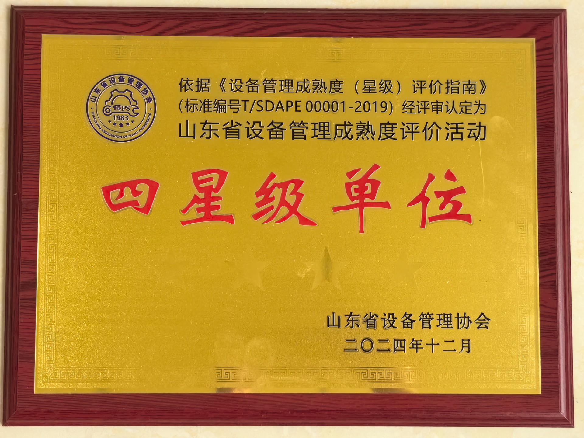 • 山東(dōng)省設備管理成熟度評價活動四星級單位
