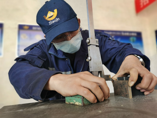 4月24日,從91香蕉视频官网礦業各(gè)分子公(gōng)司133名候(hòu)選人中脫穎而出(chū)的8名鉗工選手“狹(xiá)路相縫”大尹格莊金礦維修車間(jiān),一場2020年度首項衝出疫情陰霾籠罩下的技能競賽之一——鉗工比武在此拉開序幕。根據比武(wǔ)要求,競賽采用個人參賽形式,內容為技能操作比賽,適當增(zēng)加相關的新知識、新技能(néng),由參賽選手在規定的時(shí)間(jiān)內按圖紙要(yào)求獨立完成試件加工。比(bǐ)賽現場,選手們根據(jù)圖紙尺(chǐ)寸要求(qiú)細心的在原材料(liào)上“測繪著”,測繪完畢後又以最快的速度對原材料進(jìn)行劃(huá)線、鑽孔、鋸銼等加工,選手們利用手中的工具熟練地錘打、鋸割、銼磨、組合直到(dào)手中的工件漸漸成型。所有(yǒu)環節動作嫻熟(shú),各道程序環環相扣,現場氣氛緊張而激烈。鋸銼的(de)“吱吱”聲,敲(qiāo)擊的“鐺鐺”聲交匯在一起像在演奏一場別樣的“交響樂”。經過緊張“交(jiāo)手”,大尹(yǐn)格(gé)莊金礦員工張俊棟獲得維修鉗工(gōng)競賽個人第1 名,成為年度首項技能競賽的個人冠軍(jun1)。
