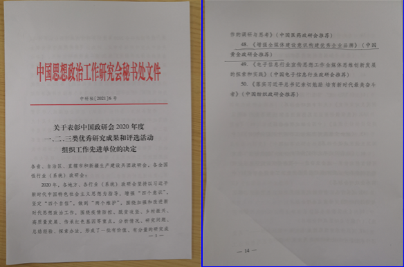 中國思想政治研究會是(shì)中(zhōng)央宣傳部領導的,組織和推動思想政治工作研究的全國性組織,主管全國省、自治(zhì)區、直轄市、新疆生產建設兵(bīng)團思想(xiǎng)政治工作研究會(huì)和全國性行業(係統)思想政治(zhì)工作研究會。此次在全國範圍內,共評選出一類研究成果20篇、二類研究成果30篇、三(sān)類研究成果50篇。