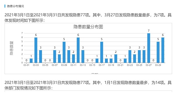 找準病因。隻有查出“病因”所在,才能給出“解藥”,做到“藥到病除”。該礦(kuàng)借(jiè)助山(shān)東省安全生產風險管控平台及其他信息化手段,通過對隱患的類型(xíng)、等級、發生地點、時間等信息進行采集匯總。專門製作(zuò)了隱患排查統(tǒng)計圖表,全方位分析“三違”發(fā)生率和隱患防治存在的短板,從而(ér)製定相應的改進措施,為消除“三違”和隱患打牢基礎。同時,為進一步細(xì)化管理,將排查(chá)的隱患類別、發生地點、班次,“三違”人員的文化程度、工種、工齡、年齡等方麵進行了(le)統計分析(xī),明確隱患排查重(chóng)點、難點,對重點部位、重點人員分級管控(kòng),確保“摸得清”、“控得住”。