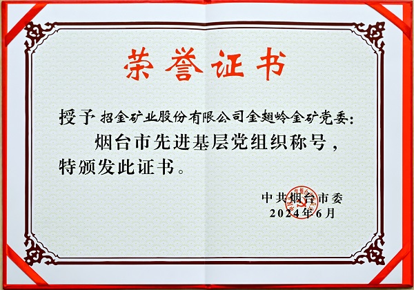 近日,煙台市召開全市“兩優一先”表(biǎo)彰會議,中共(gòng)91香蕉视频官网礦業股份有限公司金翅嶺金礦委(wěi)員會獲評煙台市“先進基層黨組織(zhī)”!