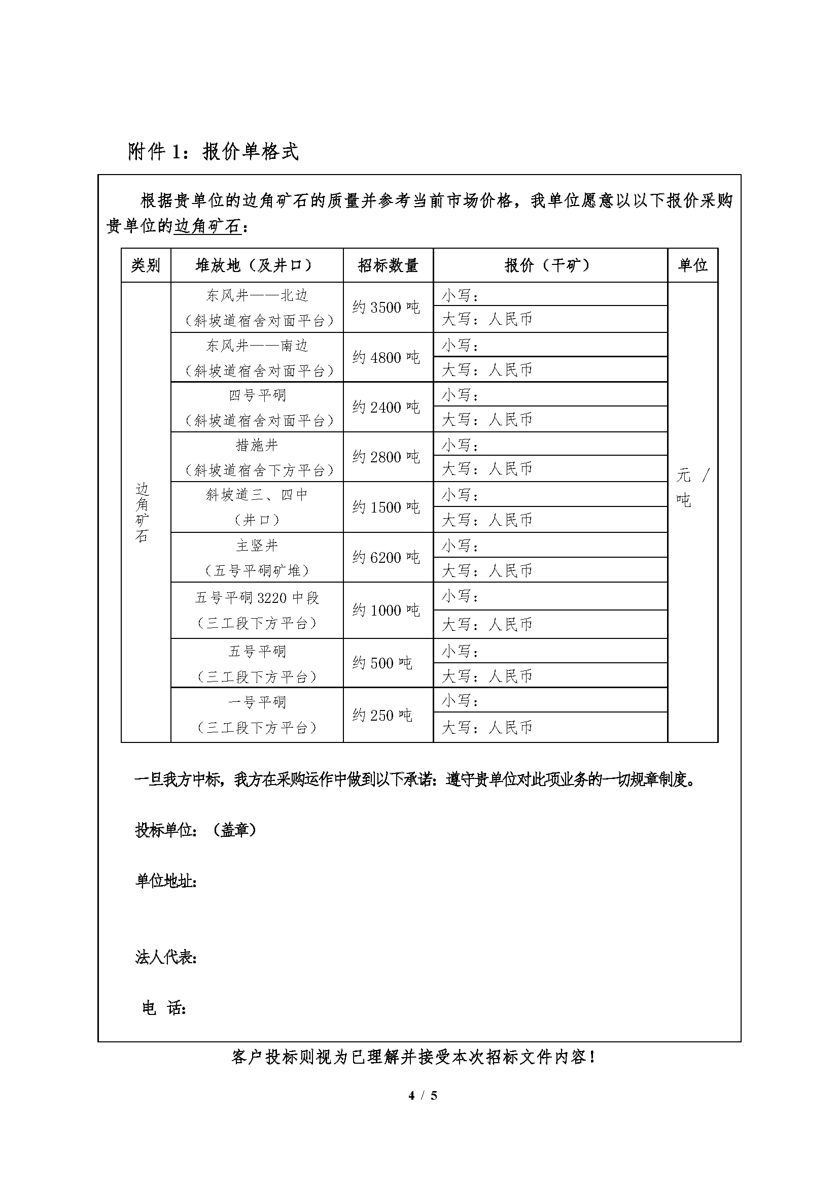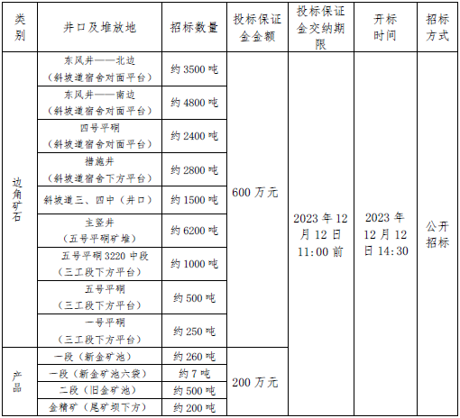 注:本次招標產品數量為預估(gū)數,投標按幹礦報價,中標結算濕礦以實(shí)際過磅數為準,邊角礦(kuàng)石水分按2%扣除計算幹礦,產品水分由中標人及我(wǒ)公司相關科室、車間人員現場取樣、我公司化驗室的水分數據(jù)為準(zhǔn)。如中標人需要,我公司開具甘肅省增值稅普通發票(黃金)。