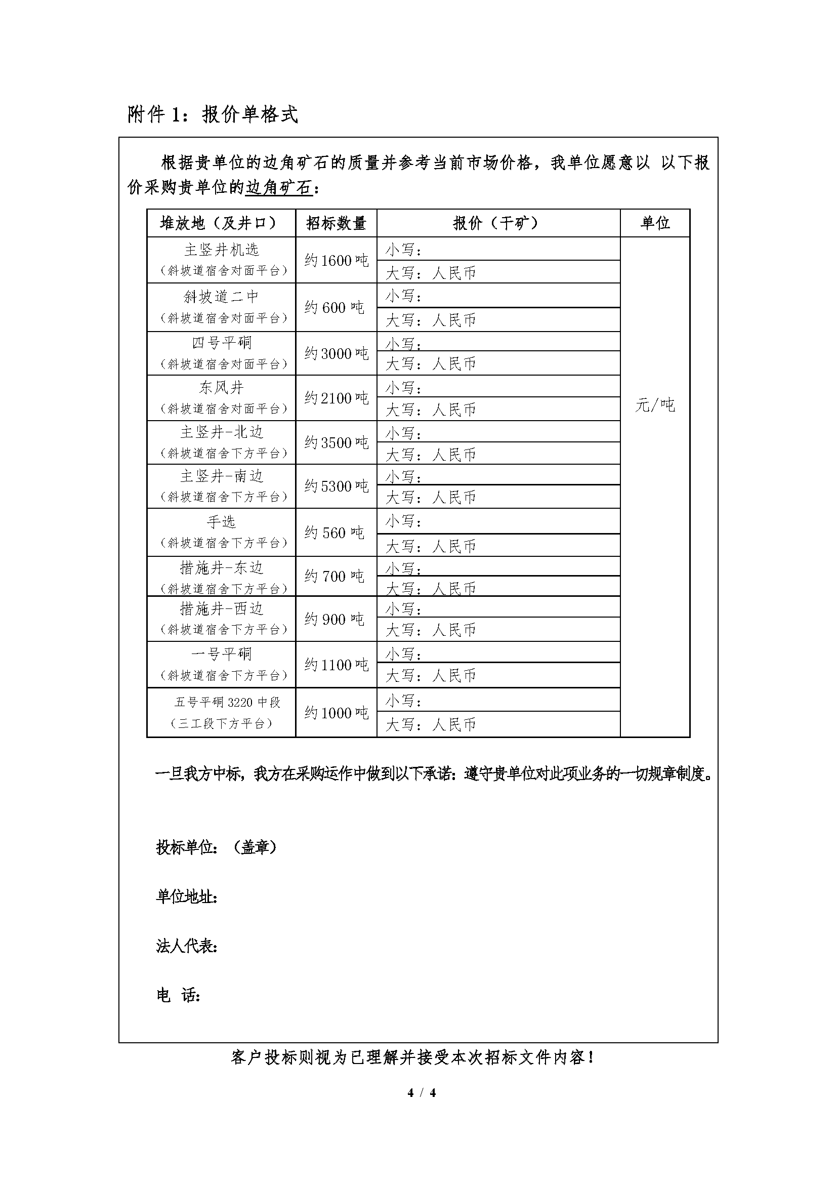 4.如無異議,請投標(biāo)人將此招標文件和報價單加蓋企(qǐ)業公章(或按捺手印)原件掃(sǎo)描後發送至指定(dìng)投(tóu)標(biāo)郵箱;報價單所需填寫的數據原則上要求電(diàn)子版,若手寫須大小(xiǎo)寫注明(míng),如有塗改、不清晰或大小寫不一致的視為廢標。其他未盡事宜,以中標後簽訂的合同(tóng)條款約定為準。
