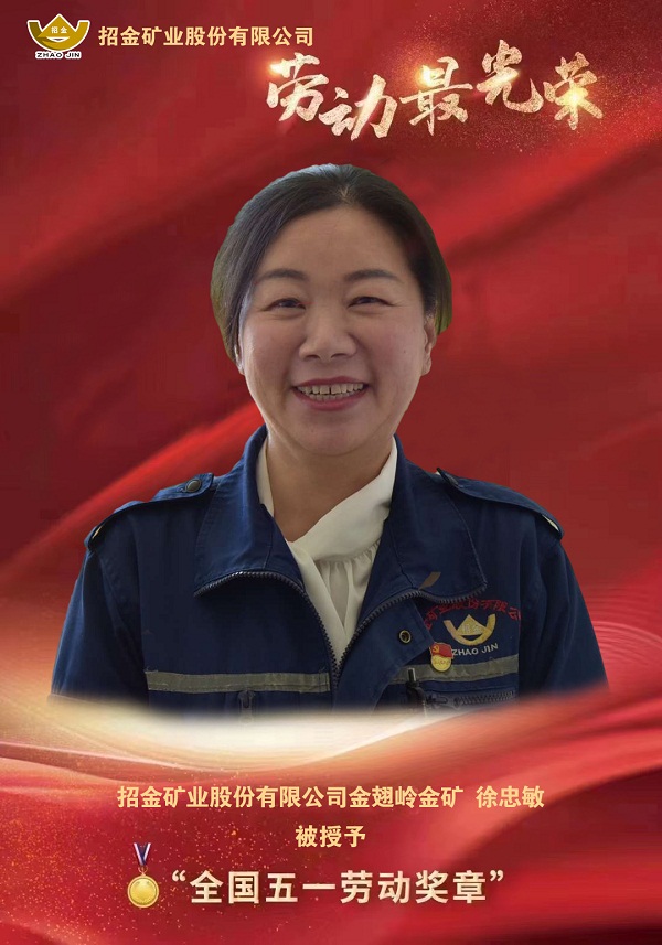 91香蕉视频官网礦業股份有限公司金翅嶺金礦徐(xú)忠敏被授予2022年度全國五一勞動獎(jiǎng)章。